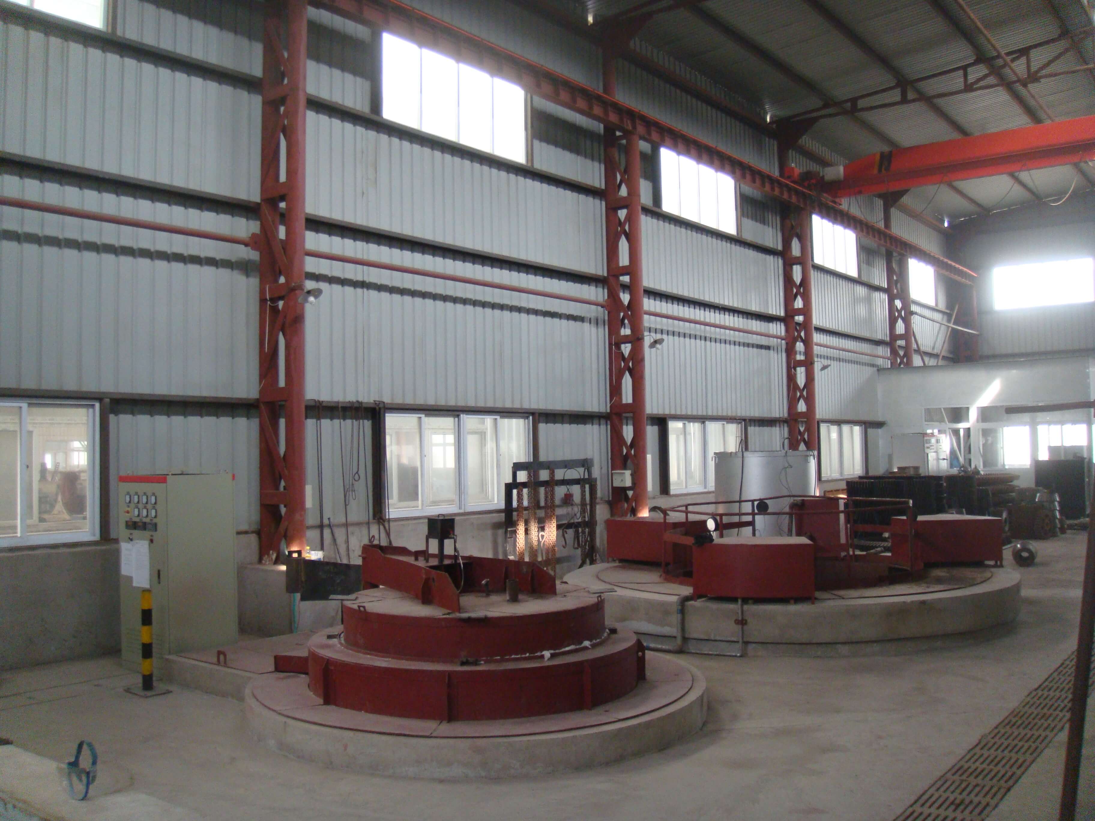 ,10t吊車2 臺。擁有CLCHL3600-400超音頻數(shù)控齒輪噴液淬火機(jī)1臺;RT3-2009-9全纖維爐襯臺車式電阻爐1臺;RJ3-180-11全纖維爐襯井式電阻爐1臺,J4-135-5不銹鋼爐襯回火爐1臺;180立方米淬火液槽3個...