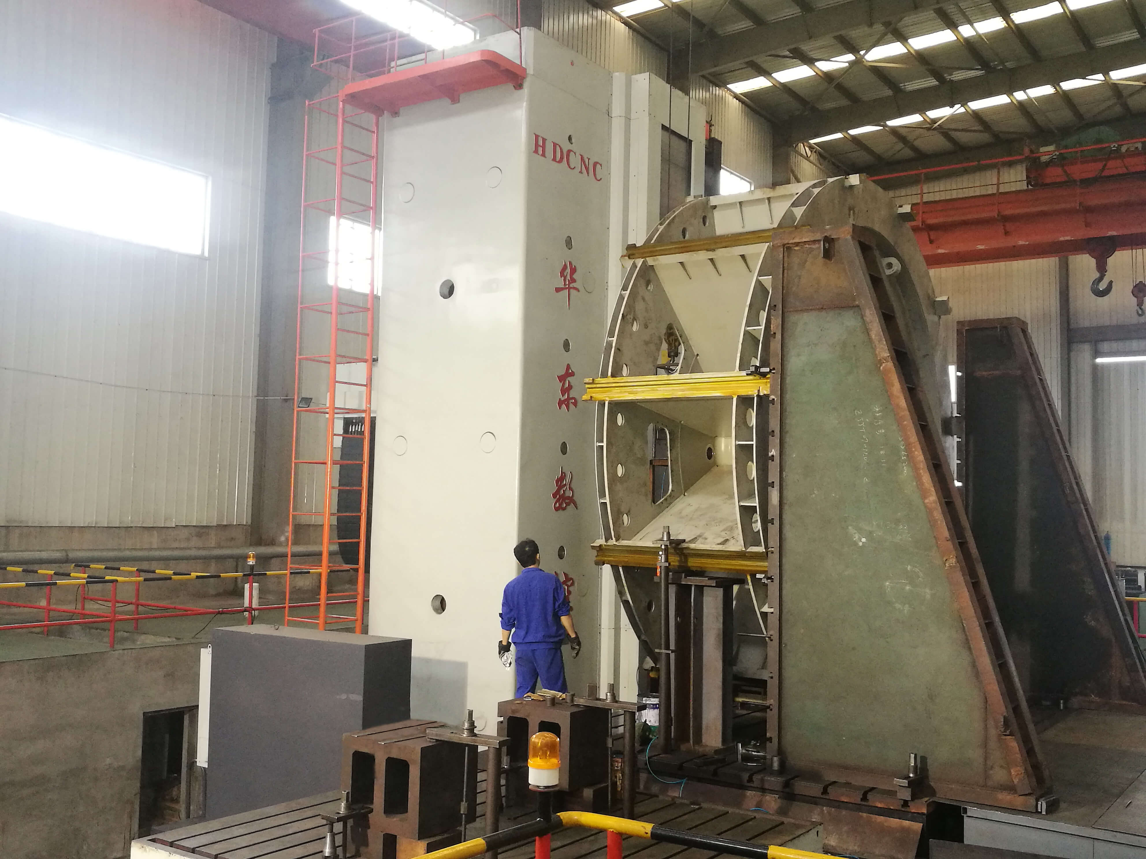 總建筑面積8290平方米,50t吊車2臺,20t吊車1臺,10t吊車5臺。擁有冷加工設(shè)備68臺套,包括TK6920-120-50重型數(shù)控落地銑鏜床,HC1200A臥式數(shù)控加工心,CKD61210/5000mm數(shù)控臥式車銑專機1臺;12m×2.5m重型刨銑磨床1臺;?200落地鏜床1臺;TPX6113鏜床1臺;T6111鏜床1臺;立式車床4.0米、2.5米、1.25米、0.8米等10臺;CAK系列數(shù)控車床6臺套;CW61100普車3臺;CW6280B普車3臺;滾齒機、插齒機、線切割、平面磨床等;